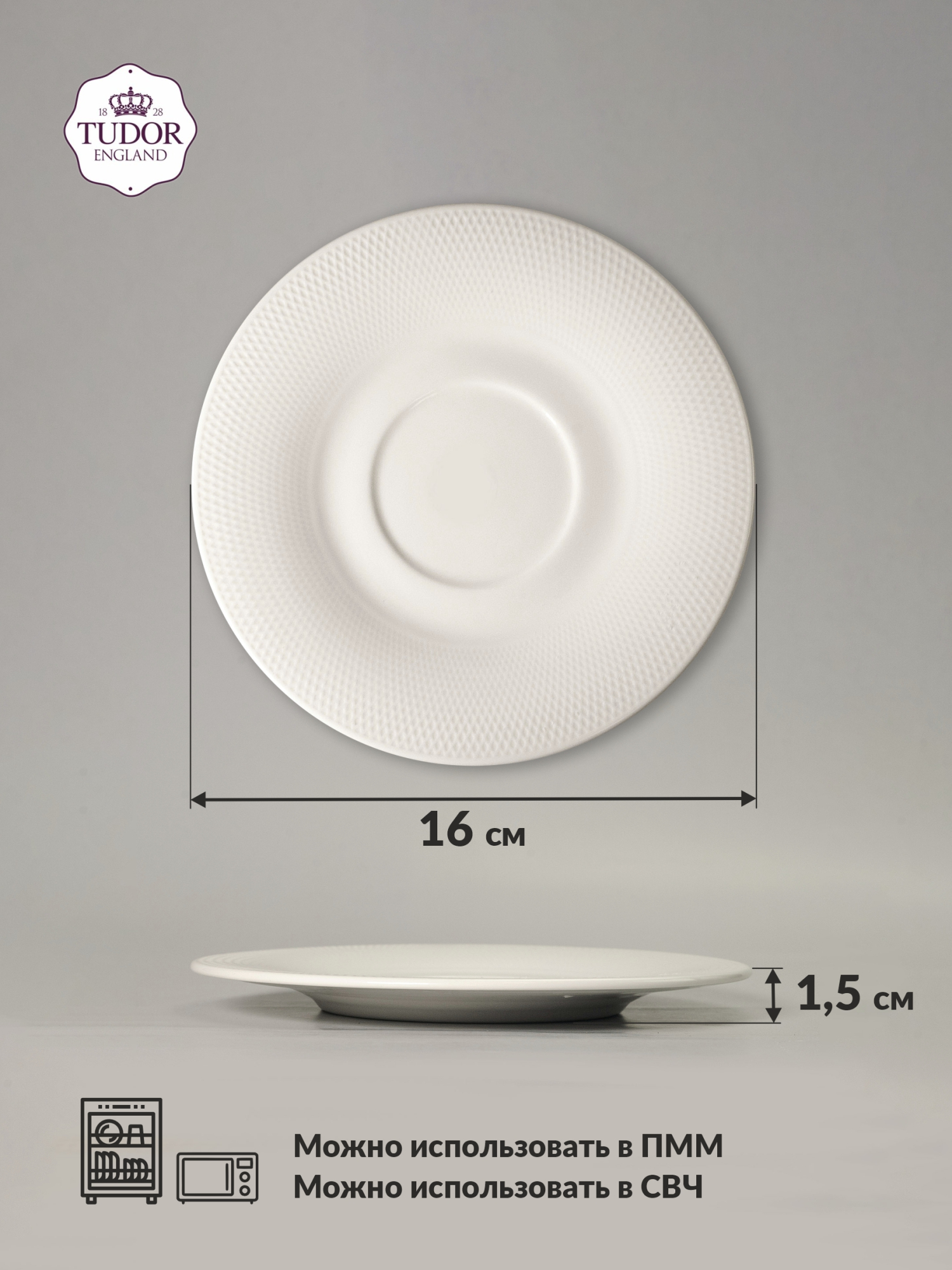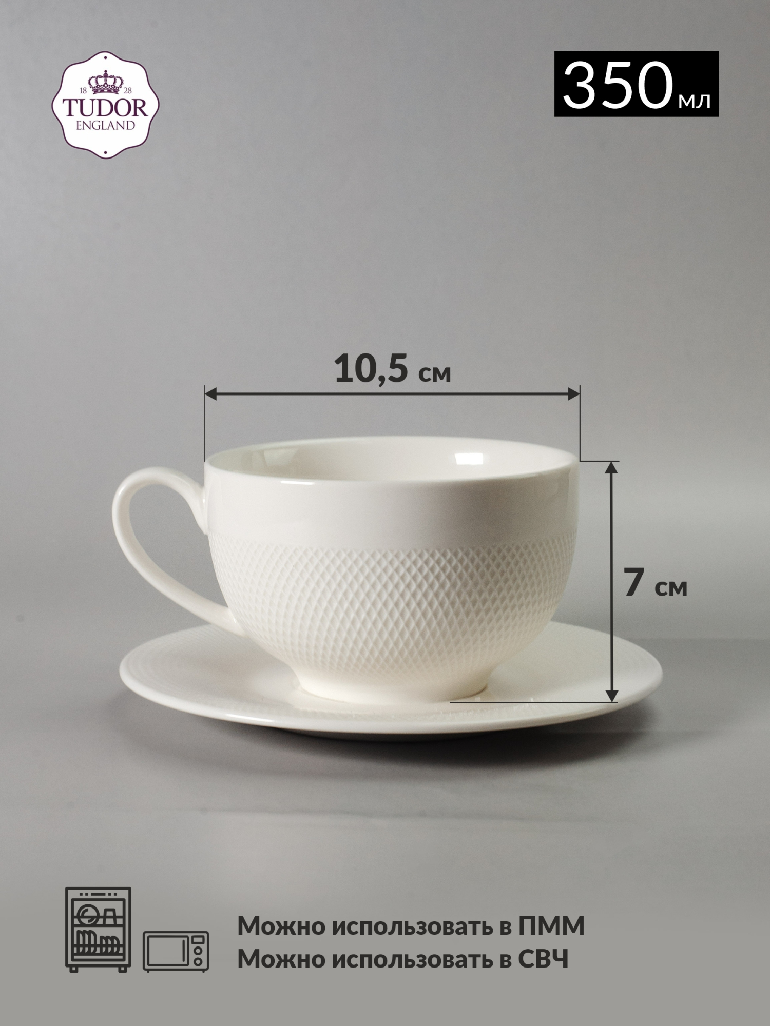 Чайная пара Tudor England коллекции "Royal Sutton" изготовлена из прочного фарфора, имеет защиту от сколов. На кружке и блюдце нанесен легкий геометрический узор.