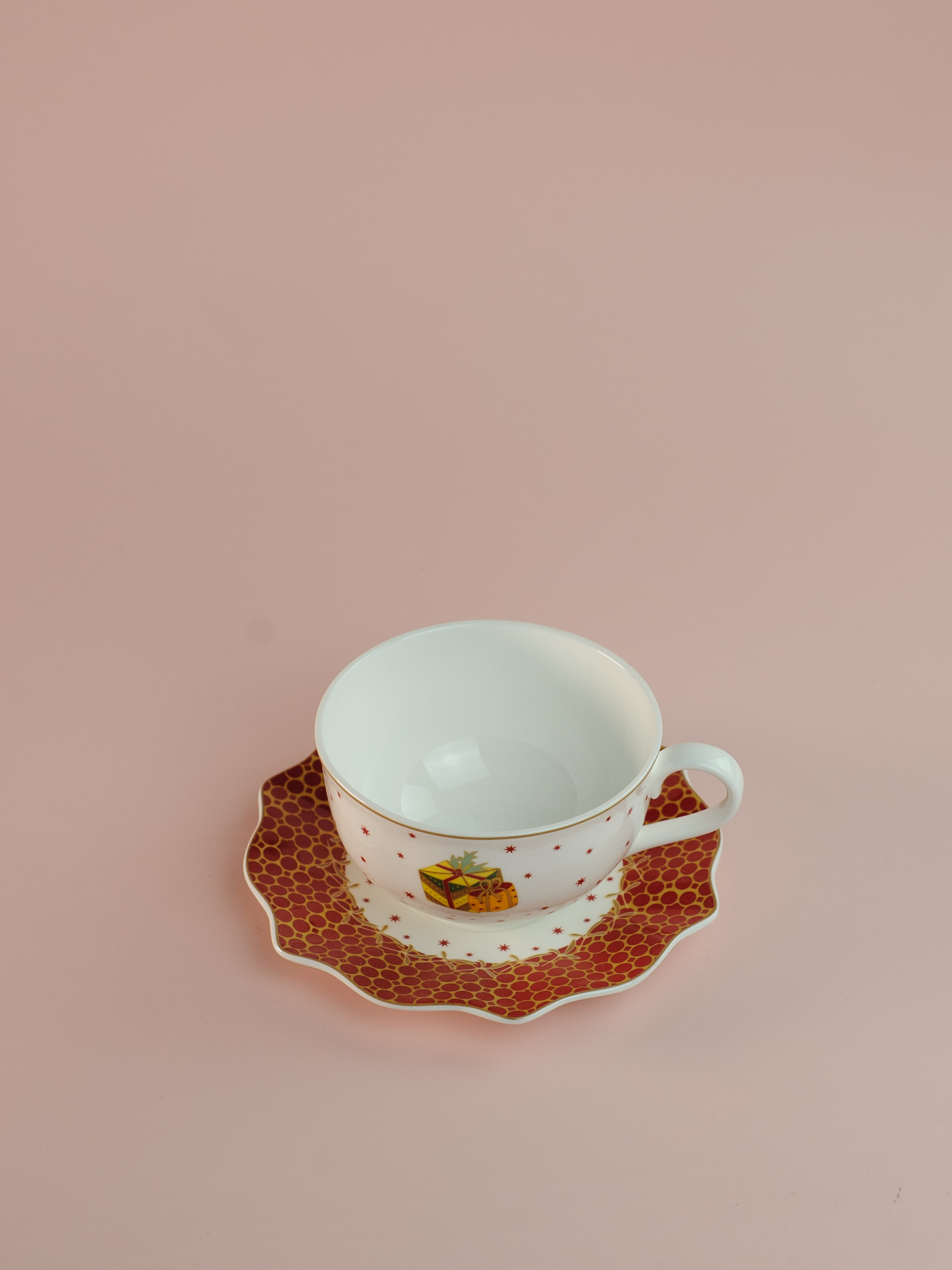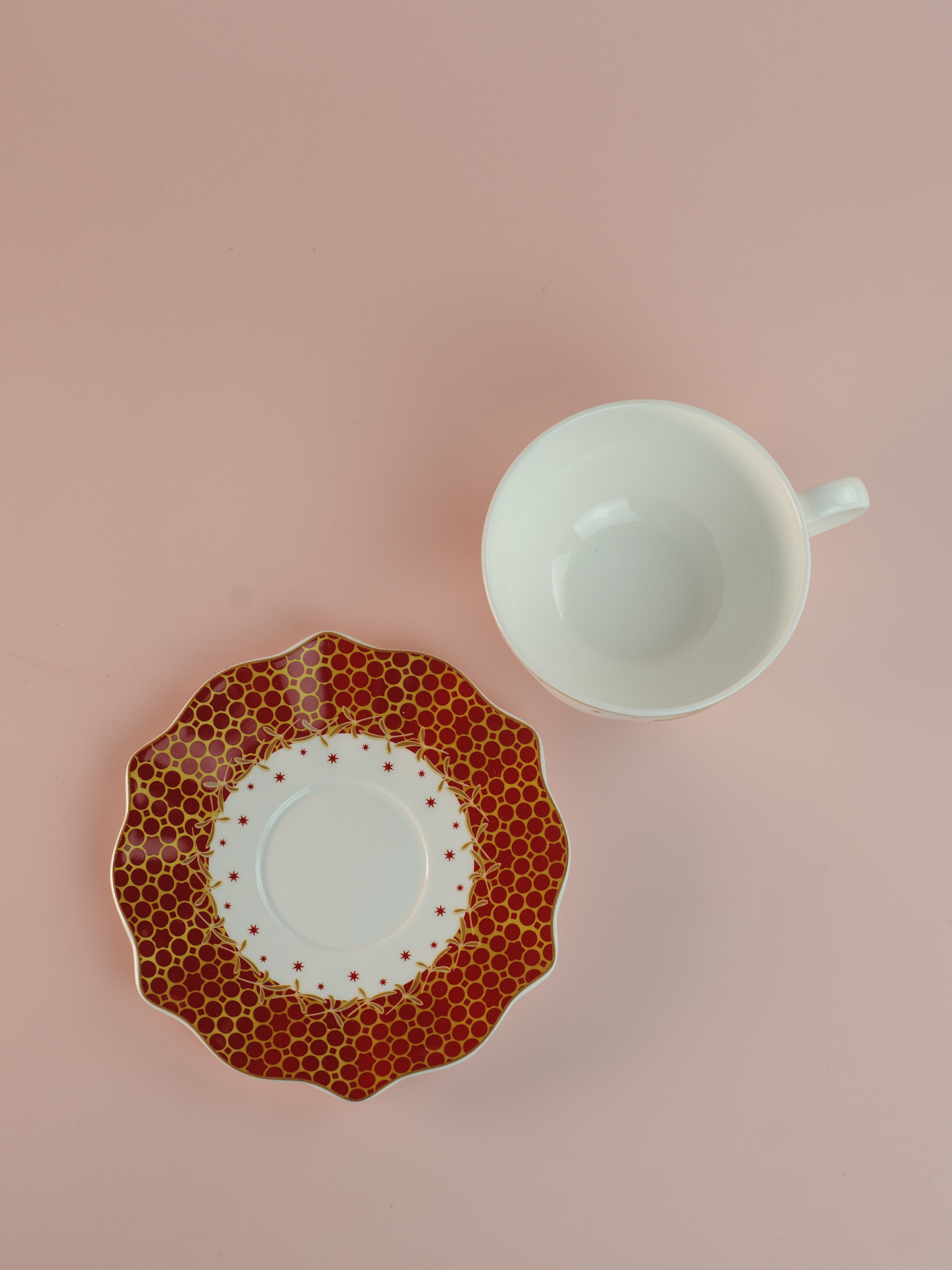 Чайная пара выполнена из высококачественного фарфора, а дополнительный блеск придает потрясающая глазурь, которая исключает вероятность повреждения поверхности столовыми приборами. Благодаря этому она сохранит свою новизну и подойдет для ежедневного использования.