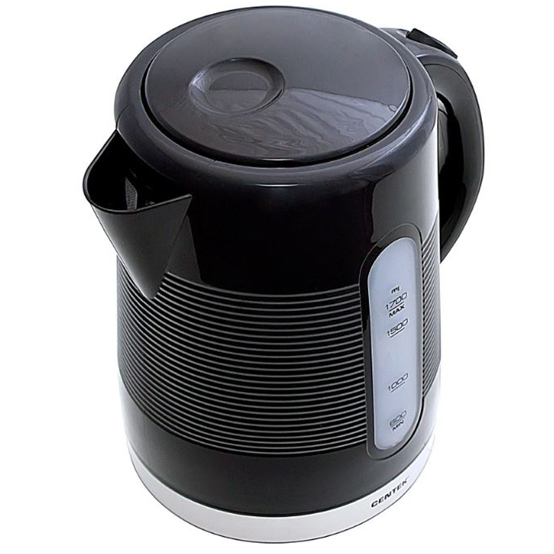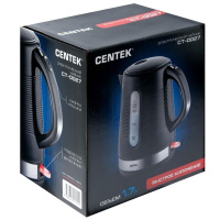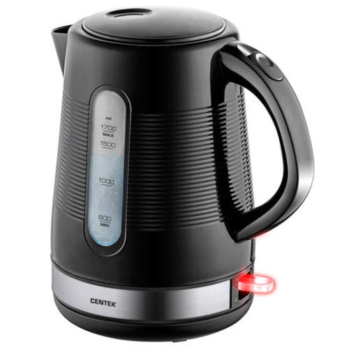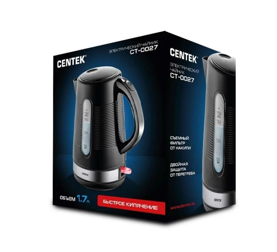Стильный чайник Centek СТ-0027 – качественное и надежное изделие объемом 1,7 л и мощностью 2200 Вт, которое кипятит воду за несколько минут. Имеет скрытый нагревательным элемент для безопасного нагревания воды, подсветку кнопки включения и съемный фильтр от накипи. Материал корпуса – высококачественный пластик. Фактурный корпус чайника имеет окно со шкалой уровня воды. Пластиковая ручка чайника не перегревается и не скользит в ладони во время использования. Сливной носик обеспечивает удобное переливание воды. Плотно прилегающая к корпусу крышка обеспечивает герметичность при закипании. Она открывается одним нажатием кнопки на ручке, что помогает избежать контакта кожи с паром. База чайника со стальной отделкой. Благодаря автоматическому отключению чайника вам не нужно находиться рядом с прибором во время его работы. Защита включения без воды предупреждает поломку. Вращение базы на 360°. Отсек для шнура, расположенный на дне базы, экономит место при хранении.