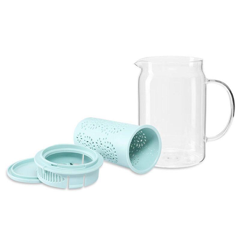 Чайник изготовлен из высококачественного боросиликатного стекла, крышка из прочного пластика, ситечко из нержавеющей стали.