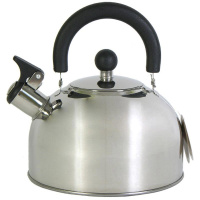 Чайник изготовлен из высококачественной нержавеющей стали. Нержавеющая сталь обладает высокой устойчивостью к коррозии, не вступает в реакцию с холодными и горячими продуктами и полностью сохраняет их вкусовые качества. Чайник оснащен удобной подвижной бакелитовой ручкой, которая не нагревается и не скользит. Носик чайника имеет откидной свисток, звуковой сигнал которого подскажет, когда закипит вода. Термосберегающее трехслойное дно с алюминиевой прослойкой. Чайник подходит к газовым, электрическим, стеклокерамическим плитам.