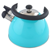 Чайник 2,5 л оборудован свистком для определения закипания воды и изготовлен из высококачественной нержавеющей стали. Корпус из стали долговечен, не подвергается коррозии и обладает антиаллергенными свойствами. Подвижная ручка модели очень удобна и не нагревается, так как изготовлена из бакелита. Широкое цельнометаллическое дно распределяет тепло равномерно по всей поверхности, что обеспечивает быструю скорость закипания воды и устойчивость изделия. Герметичная крышка не пропускает пар, поэтому вода долго остается горячей. Изящная форма чайника, яркая расцветка и зеркальная поверхность корпуса придают ему эстетичности на столе.