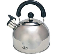Чайник 2,5 л изготовлен из высококачественной нержавеющей стали 18/10 с зеркальной полировкой. Нержавеющая сталь обладает высокой устойчивостью к коррозии, не вступает в реакцию с холодными и горячими продуктами и полностью сохраняет их вкусовые качества. Чайник оснащен фиксированной ручкой из бакелита с покрытием Soft-Touch. Носик чайника имеет откидной свисток, звуковой сигнал которого подскажет, когда закипит вода.