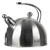 Чайник для плиты TalleR Инесс выполнен из высококачественной нержавеющая стали методом завальцовки. Толщина стенки 0,6 мм, толщина дна 4,0 мм. Полировка внешняя - матовая, внутренняя - зеркальная. Капсулированное дно с алюминиевой вставкой обеспечивает идеальное распределение тепла. Крышка выполнена из жаропрочного боросиликатного стекла и нержавеющей стали. Ручка и съемный свисток из нержавеющей стали. Закипание сопровождается приятным звуковым сигналом. Надежное крепление ручки гарантирует безопасное использование. Возможен нагрев ручки (обычно на газовых плитах). Через пару минут после выключения конфорки ручка чайника станет комфортной температуры, поэтому прихватку можно не использовать. Чайник для плиты сделан из нержавеющей стали и боросиликатного стекла, без пластиковых деталей.