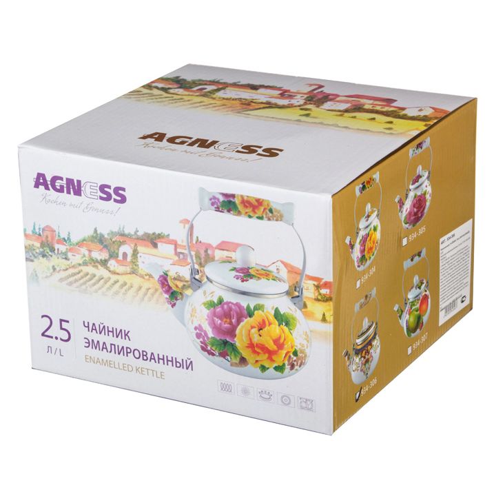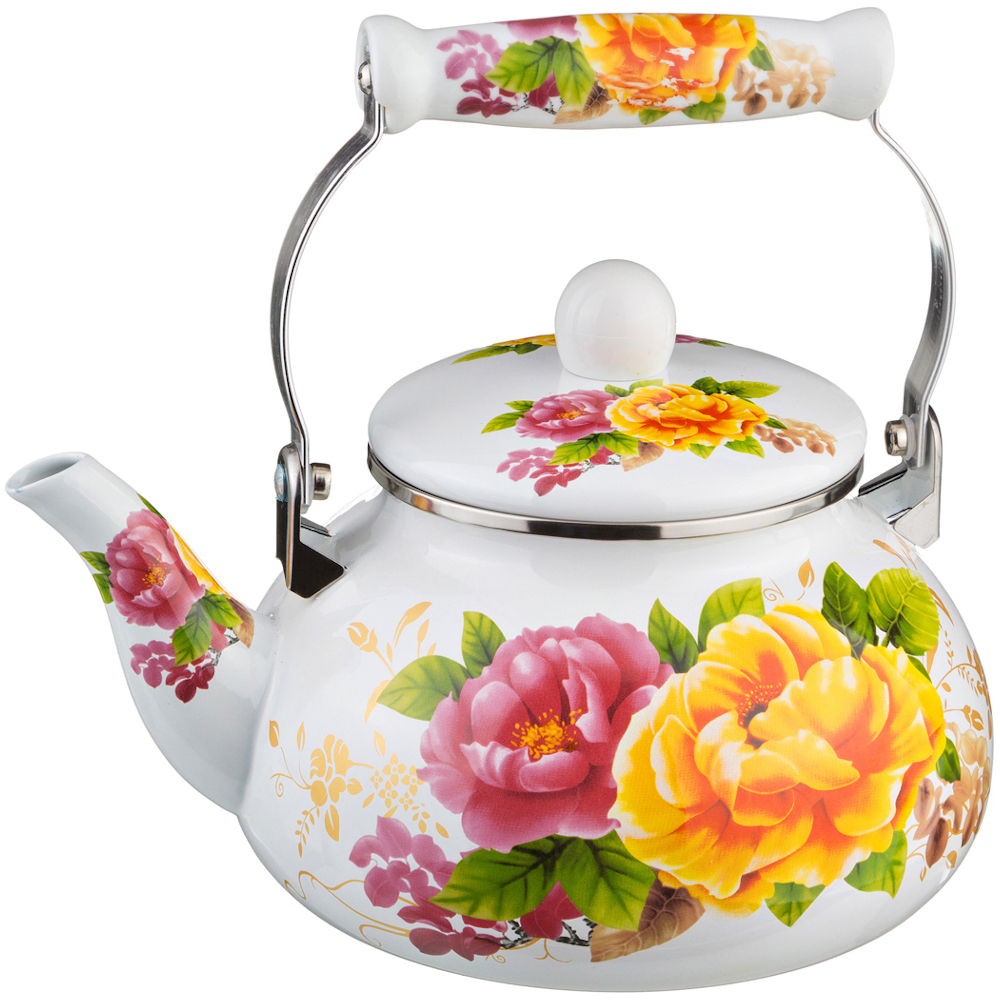 Чайник эмалированный 2,5 л изготовлен из высококачественной стали. Корпус из данного материала долговечен, не подвергается коррозии и обладает антиаллергенными свойствами.