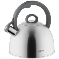 Для производства корпуса чайника со свистком NADOBA Sandra, 2,9 л использована нержавеющая сталь. Качественный материал характеризуется оптимальной прочностью, не подвержен внешнему воздействию и образованию повреждений, коррозии. Ручка эргономичной формы изготовлена из устойчивого к нагреву бакелита и дополнена покрытием Soft touch. Благодаря этому можно надежно и удобно держать изделие в процессе наливания горячей воды.