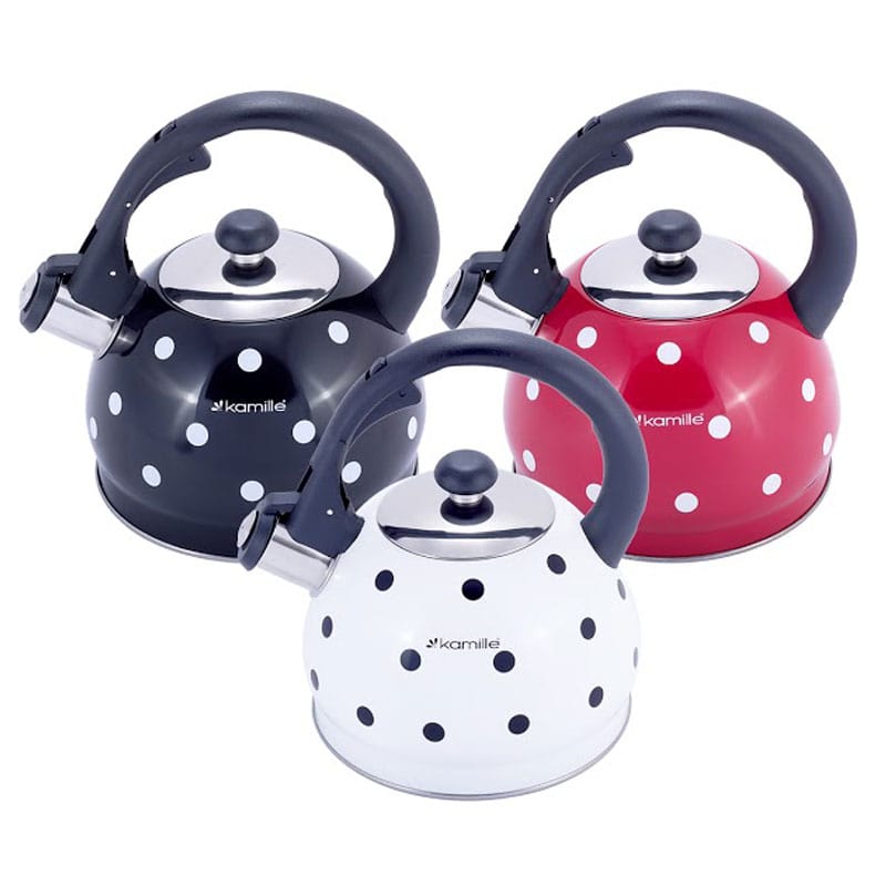 Цвет чайника: черный в горошек, белый в горошек, красный в горошек.