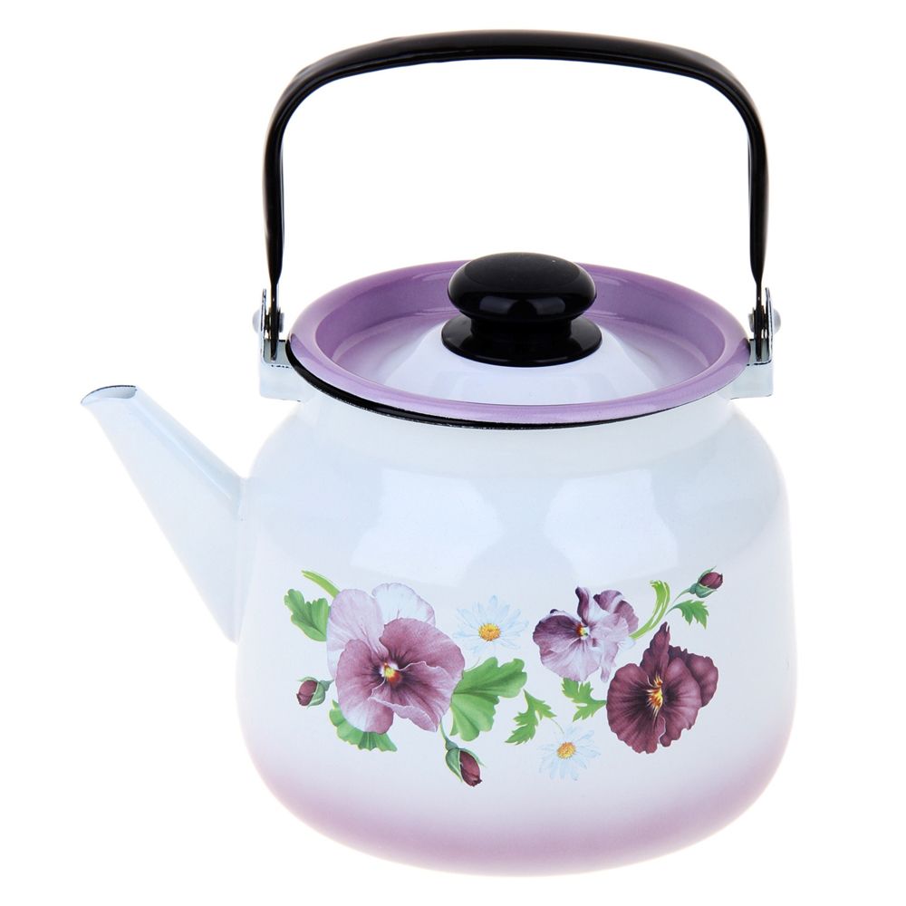 Чайник 3,5 л выполнен из высококачественного стального проката, покрытого двумя слоями жаропрочной эмали. Такое покрытие защищает сталь от коррозии, придает посуде гладкую стекловидную поверхность и надежно защищает от кислот и щелочей. Чайник оснащен подвижной стальной ручкой и крышкой с пластиковой ручкой. Внешние стенки дополнены красочным изображением. Эстетичный и функциональный чайник будет оригинально смотреться в любом интерьере.