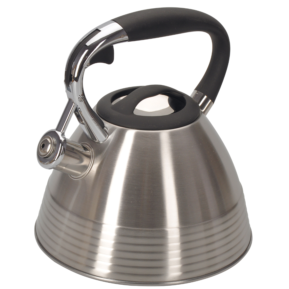 Чайник REGENT 3,0 л изготовлен из нержавеющей стали, имеет матовую полировку корпуса. Модель укомплектована свистком с курковым механизмом открывания.