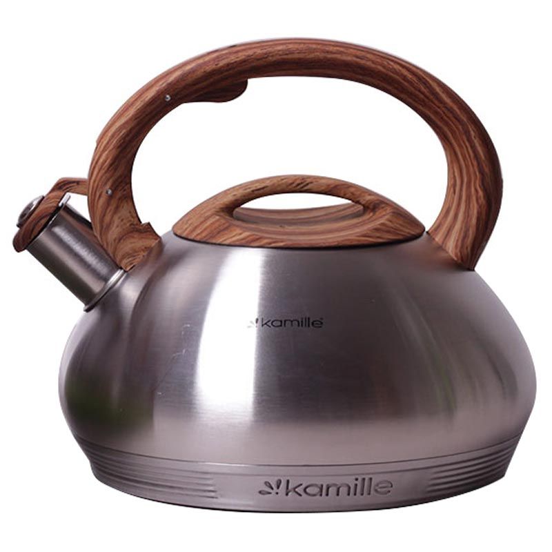 Материал: нержавеющая сталь. Материал крышки: бакелит. Общий объем: 3л. Тип ручки: фиксированная. Материал ручки: бакелит. Цвет ручки: коричневый (под дерево). Свисток: есть. Полировка металла: сатин. Подходит для индукционных плит: да. Подходит для мытья в посудомоечной машине: да. Упаковка: цветная картонная коробка.