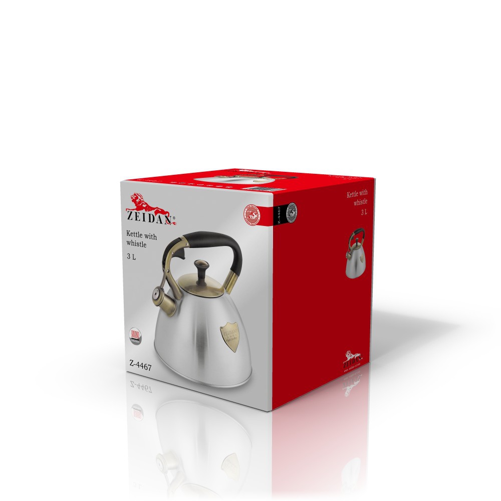 Чайник со свистком из нержавеющей стали 3 литра - идеальное решение для вас. Чайник для плиты имеет бакелитовую ручку с прорезиненным покрытием с рычагом для открывания носика. Эргономичная комбинированная фиксированная ручка с покрытием "soft-touch". Чайник для плиты газовой имеет удобный курковый механизм.