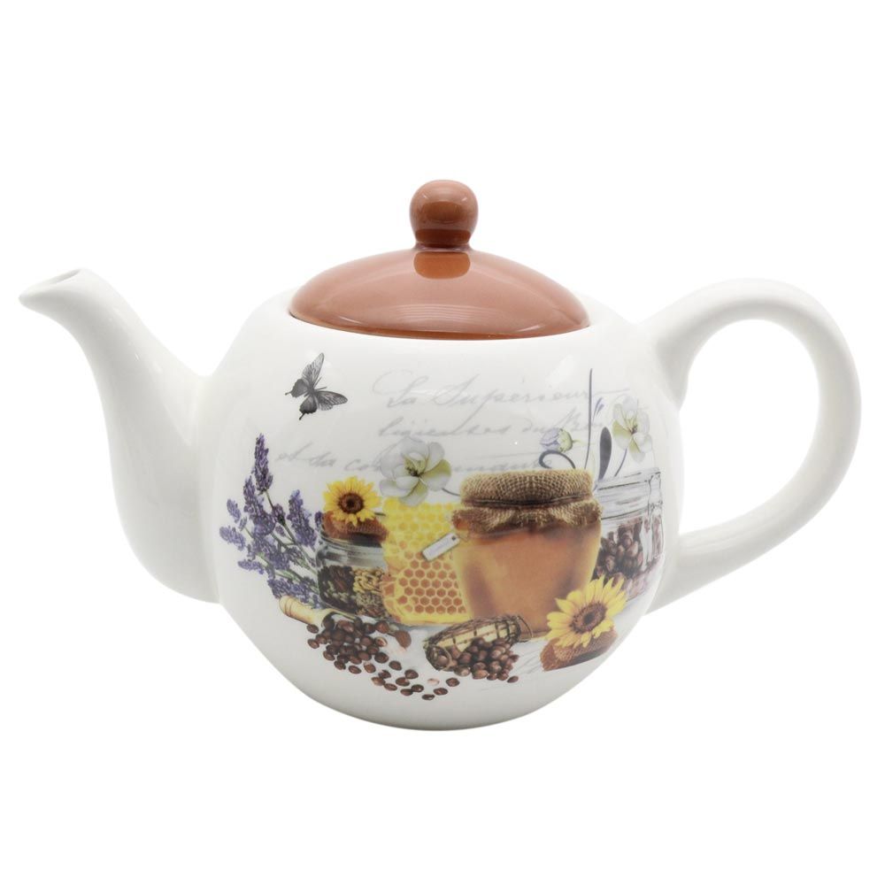 Чайник "Русский мед" изготовлен из высококачественного доломита с глазурованным покрытием и оформлен красочным изображением.
