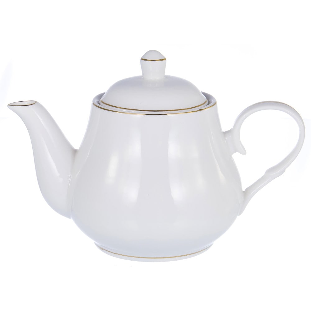 Чайник заварочный Грация "Шанти" 800мл изготовлен из фарфора, декорирован белой перламутровой глазурью с золотом. Продается в подарочной упаковке с окном.
