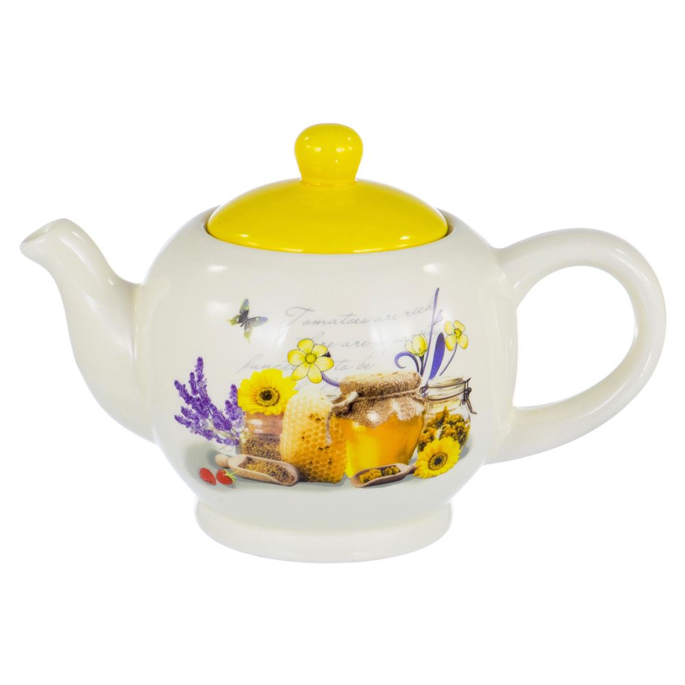 Чайник "Миель" изготовлен из высококачественной керамики с глазурованным покрытием и оформлен красочным изображением.
