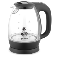 Объем 1,7 л, 1850-2200 Вт, стеклянный корпус, дисковый нагревательный элемент , вращение на 360°, подсветка, отключение при закипании и включении без воды.