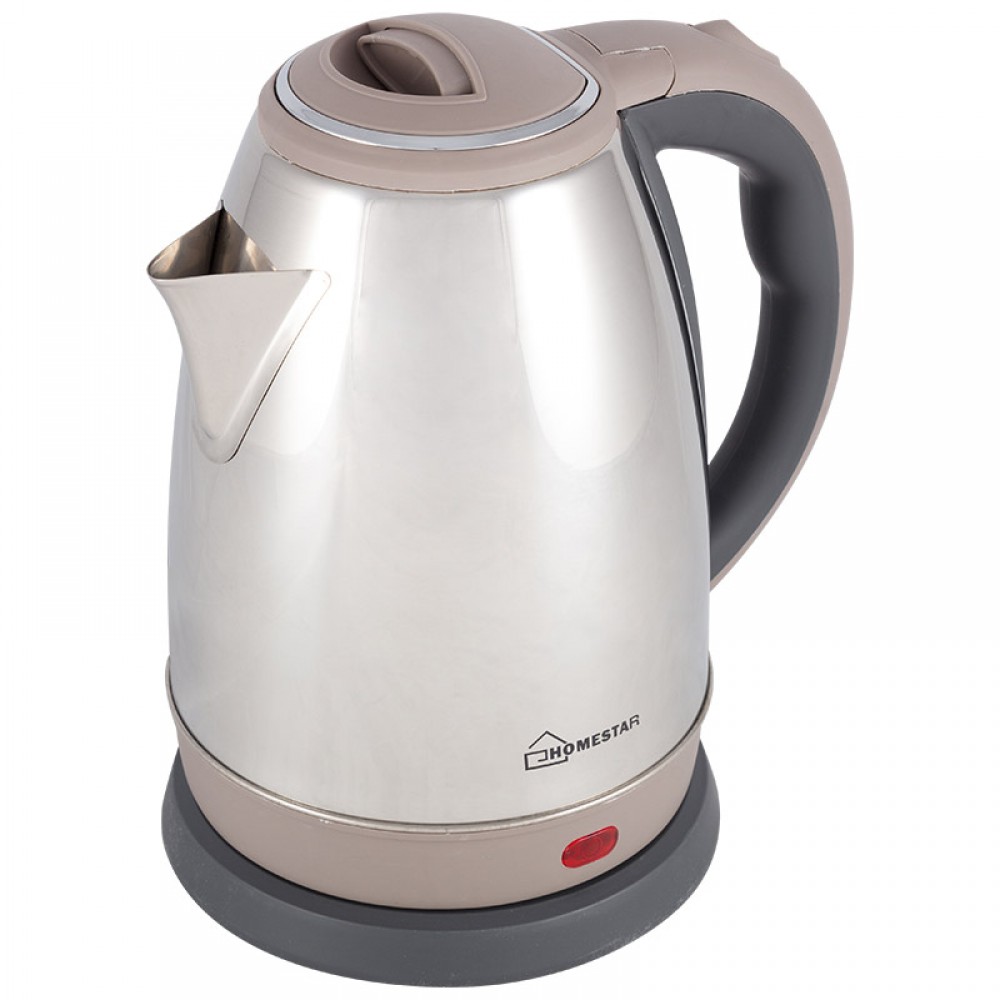 Чайник Homestar объемом 1,8 л. Корпус из нержавеющей стали, бежевый пластик. Закрытый нагревательный элемент из нержавеющей стали. Поворот на подставке 360 градусов. Защита от работы без воды. Автоматический выключатель. Световой индикатор работы. Место для хранения шнура. Мощность 1500 Вт.Особенности:Страна производитель Китай