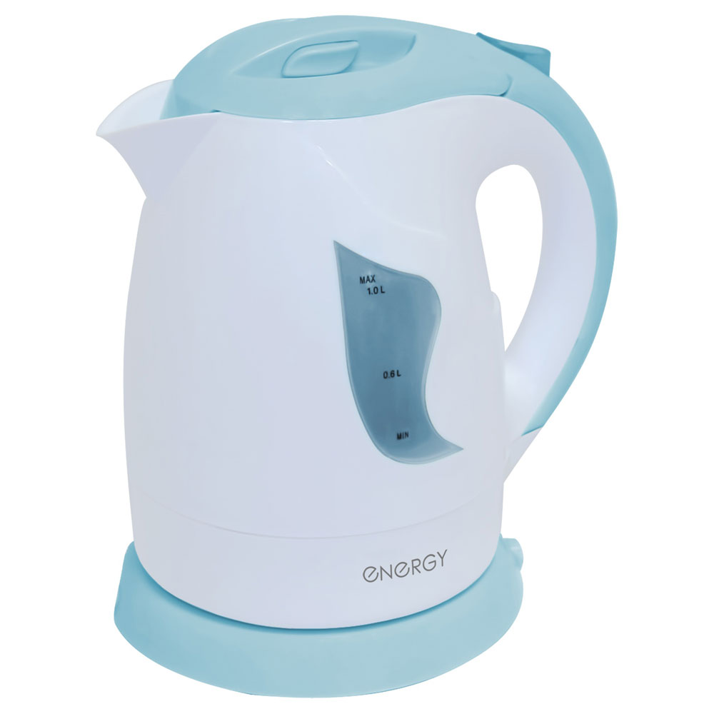Электрический чайник Energy E-209 изготовлен из качественных материалов. Прозрачное окошко позволяет определить уровень воды. Мощность 850 Вт позволит быстро вскипятить 1 литр воды. Беспроводное соединение позволяет вращать чайник на подставке на 360°. Для обеспечения безопасности при повседневном использовании предусмотрены функция автовыключения, а также защита от включения при отсутствии воды.