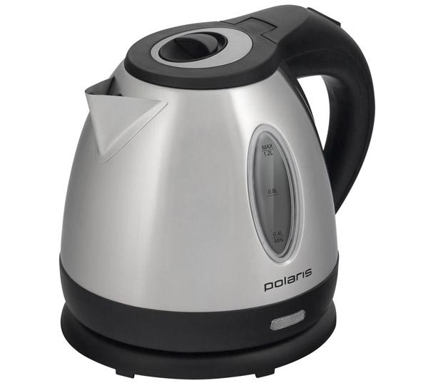 Серебристо-черный электрочайник "Polaris" подойдет для небольшого коллектива на работе или для семейных чаепитий. Приземистый и пузатый по форме, станет украшением любого помещения и добавит ему изюминку. Резервуар этого бытового прибора вмещает 1,2 литра воды. Нагревательный элемент спиралевидной формы скрыт в корпусе. Кнопка включения-отключения расположена сверху на ручке чайника, поэтому его удобно держать и включать одной рукой. Кухонный прибор весит всего 900 грамм, а использовать его удобно и несложно, поскольку он свободно крутится на своем основании. Индикатор уровня воды удобно расположен на боку чайника, позволяя всегда видеть его наполненность.