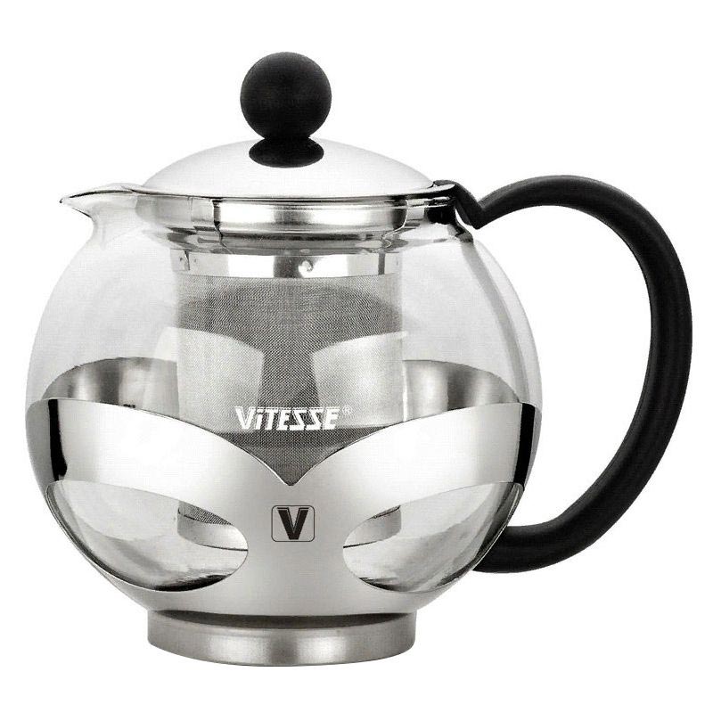 Заварочный чайник на 750мл выполнен из термостойкого стекла и нержавеющей стали.