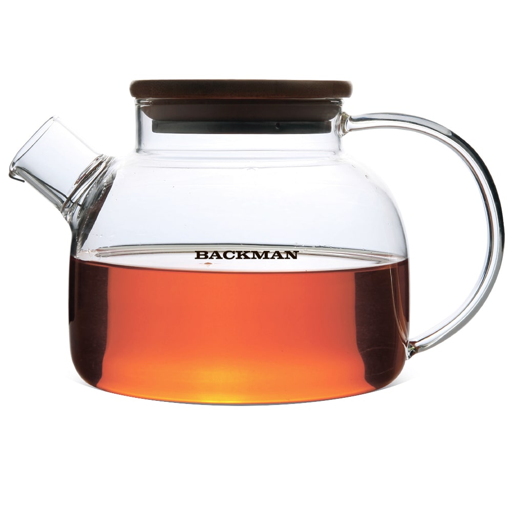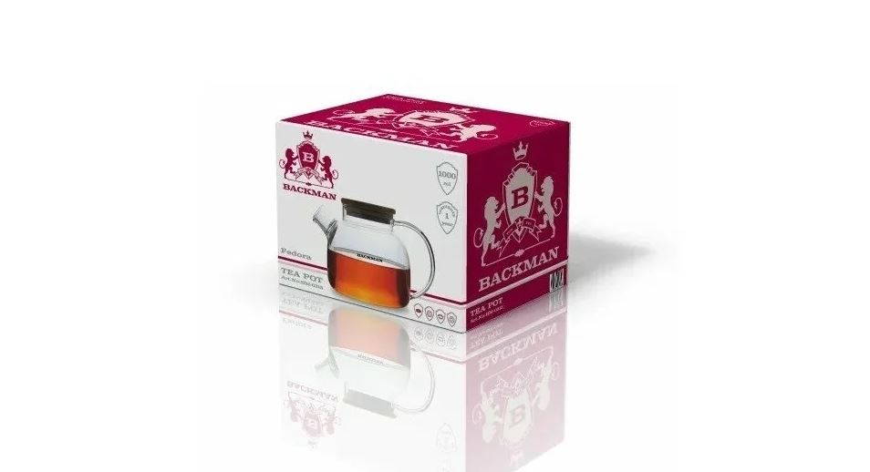Чайник заварочный бренда BACKMAN – красивый и надежный объемом 1000 миллилитров изготовлен вручную из качественного жаропрочного стекла.