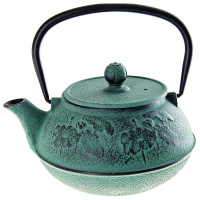 Заварочный чайник изготовлен из чугуна высокого качества. Внутренняя и внешняя поверхности чайника покрыты термостойким лаком, который защищает металл от ржавчины и препятствует возникновению металлического привкуса у напитка. Размещенный внутри чайника сетчатый фильтр гарантирует прозрачность и чистоту напитка от чайных листьев. За счет равномерного распределения тепла внутри чайника, напиток получается максимально вкусным и насыщенным. Так как чугунные чайники дольше других удерживают тепло, то и вода в нем будет оставаться горячей и пригодной для заваривания чая долгое время. Этот чайник украсит любую чайную церемонию, благодаря своему стильному восточному дизайну или просто станет прекрасным подарком на торжество. Мыть без применения абразивных моющих средств. Не подходит для мытья в посудомоечной машине. Не подходит для использования на открытом огне.
