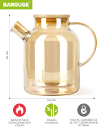 Чайник заварочный Barouge 1500 мл из прозрачного стекла, тонированный с крышкой, цвет золотой.