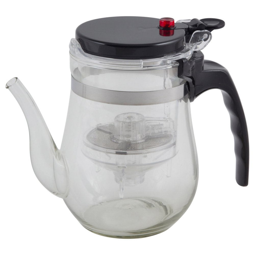 Чайник заварочный серия Gung Fu. Чай заваривается во внутренней колбе. При нажатии на кнопку чай выливается через фильтр в основную ёмкость.