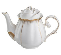 Корпус чайника украшен золотистыми деталями, что делает его воплощением утонченного вкуса и изысканности. Оригинальная и необычная крышка в виде распускающегося бутона является главной особенностью этой модели.