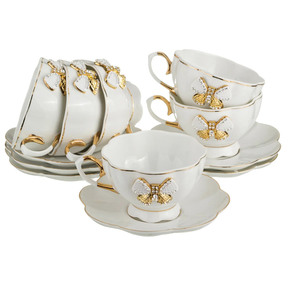 Чайный набор Lefard "Venezia" прекрасно подойдет для сервировки праздничного чаепития. Посуда изготовлена из фарфора, отличается изящным дизайном и великолепным качеством исполнения. Предметы выполнены в едином стиле и украшены стразами и золотистой каймой. Вместе они создают единый ансамбль и стилистически дополняют друг друга.