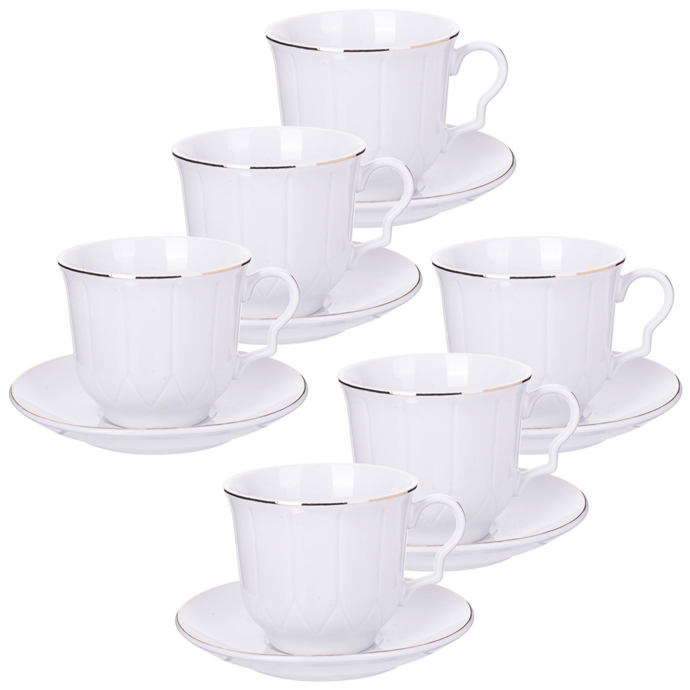 Чайный набор на 6 персон, изготовленный из высококачественной керамики изысканного белого цвета.