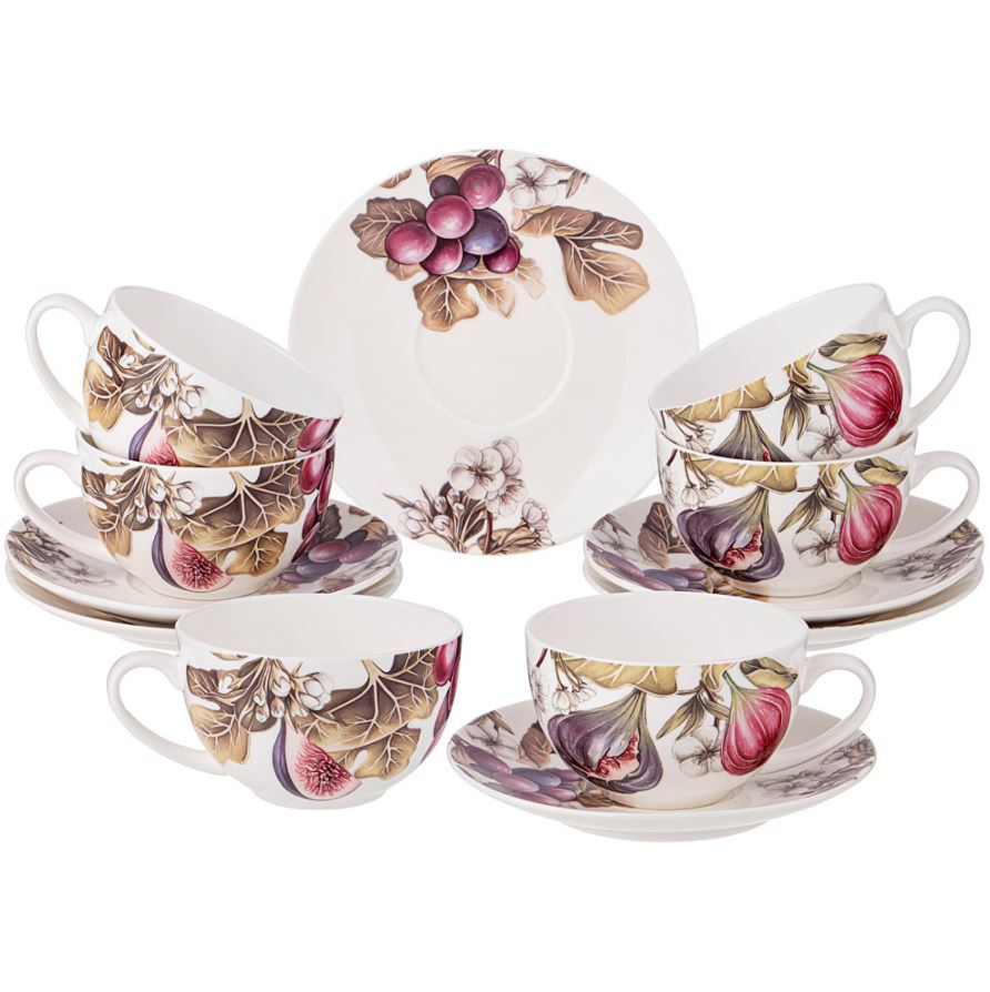 Комплектность: чашка 9,5/12 см, высота 6 см, объем 270 мл - 6 шт., блюдце 14 см - 6 шт.