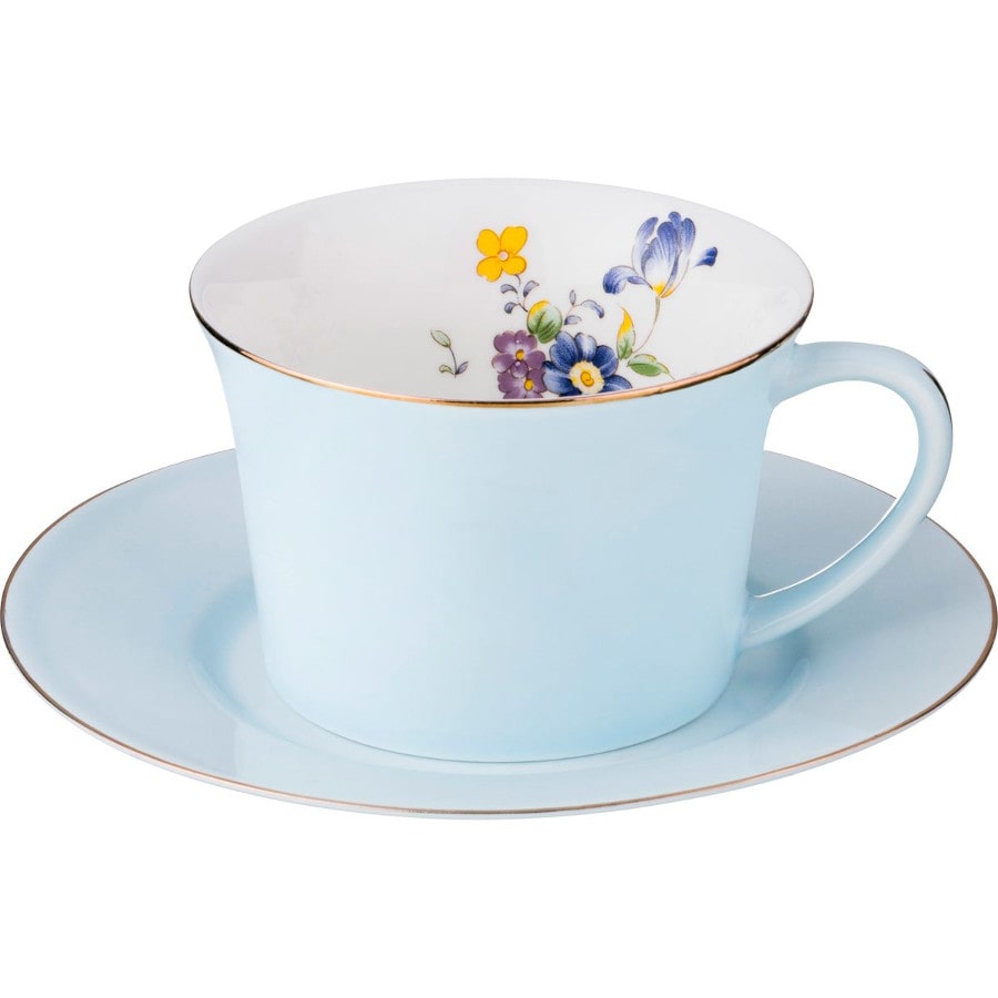 Аккуратная голубая чашечка "Времена года" и блюдце к ней выполнены из высококачественного фарфора, поэтому несмотря на свою внешнюю хрупкость, они отличаются легкостью, практичностью и эстетичностью. Отличительная особенность данной модели заключается в великолепном дизайне.