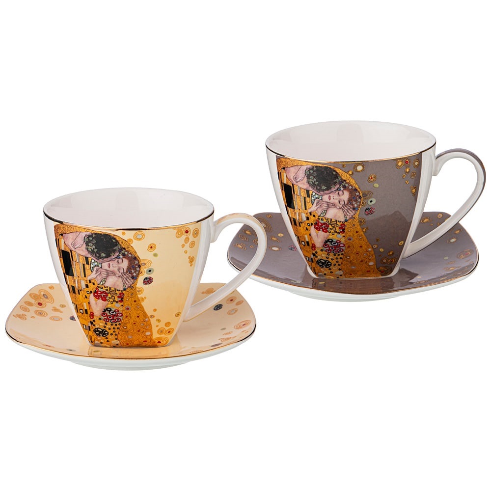 Чайный набор из тонкостенного фарфора. Декор по мотивам картин Г. Климта. Удобная форма.