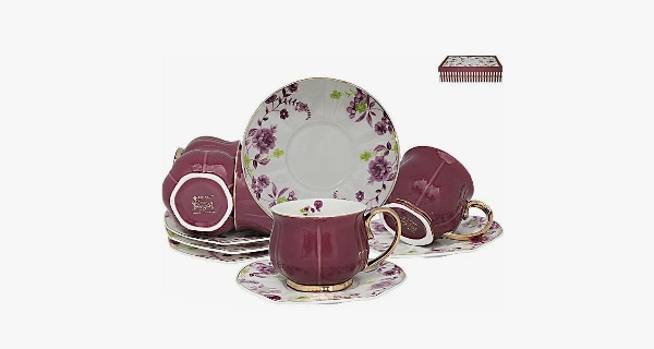 Чайный набор изготовлен из прочного фарфора высокого качества. Удобная форма чашки и оригинальный цветочный узор гармонично дополнят стильный интерьер и добавят нотку утонченности Вашей кухне.