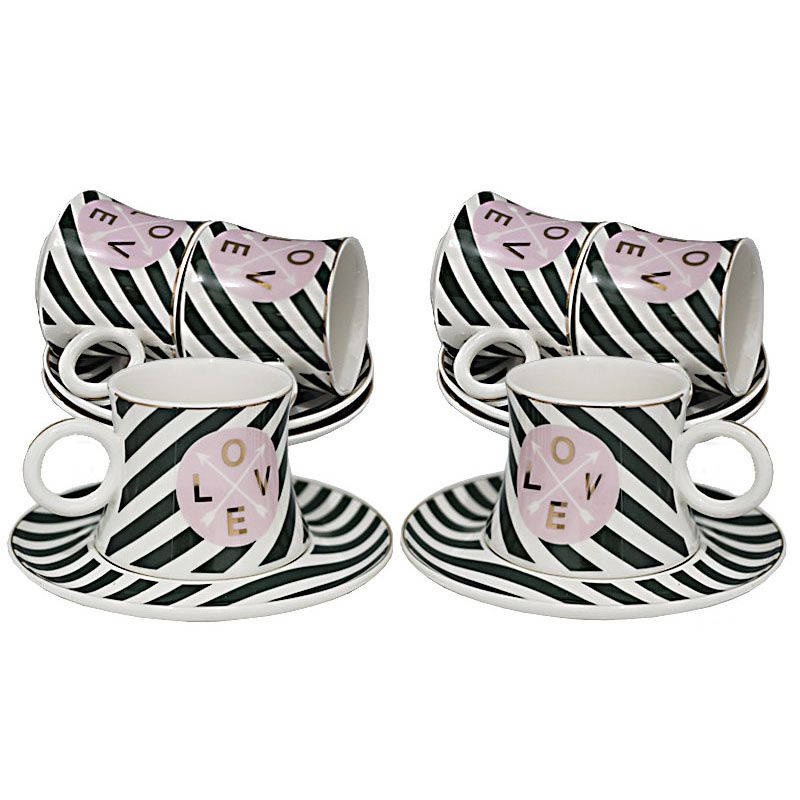 Чайный набор состоит из шести чашек и шести блюдец. Предметы набора изготовлены из высококачественного фарфора.