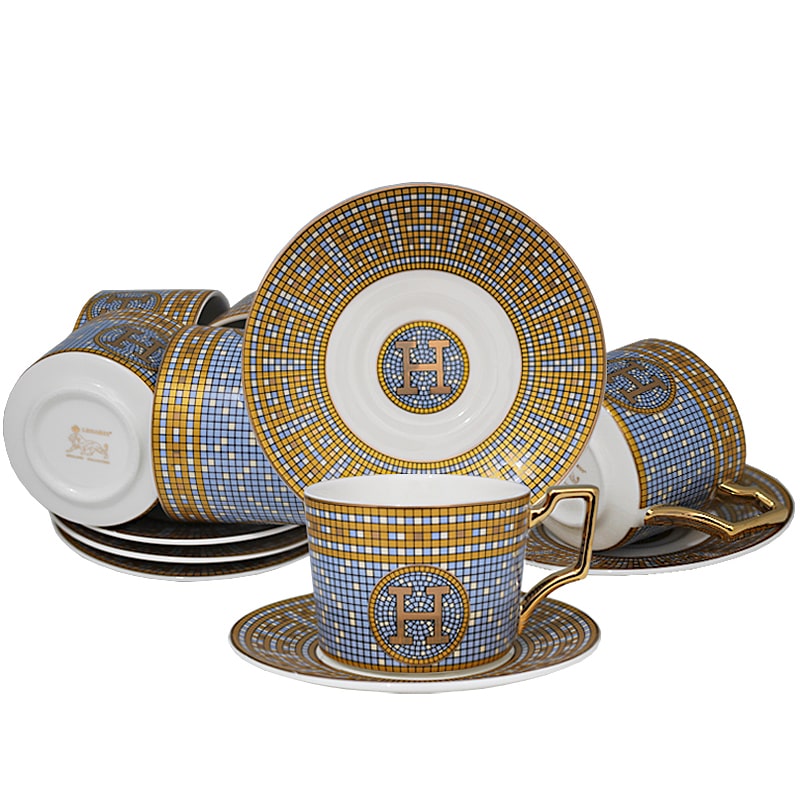 Необычно яркий чайный сервиз Lenardi из фарфора с декором в виде мозаики.
