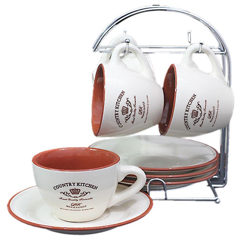 Чайный сервиз состоит из 4 чашек и 4 блюдец, изготовленных из высококачественной керамики.