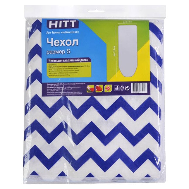 Чехол Hitt состоит из хлопка. Чехол не имеет антипригарного покрытия. Можно стирать в стиральной машине. Модель фиксируется к гладильной доске вшитым по контуру шнурком.