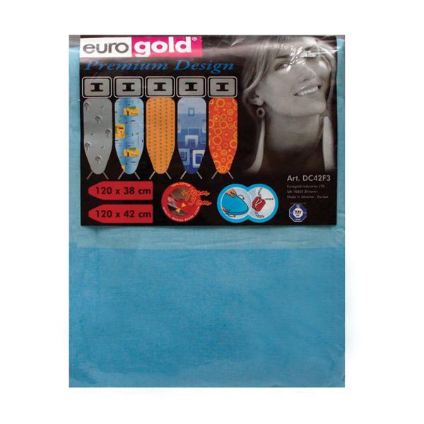 Чехол для гладильной доски EUROGOLD "Premium", необходим для обеспечения идеального результата в процессе глажения вещей, максимальный размер стола 120x42 см, покрытие из натурального хлопка обеспечивает максимальную скорость скольжения утюга, комфортная подложка, свободное пропускание пара, устойчивый рисунок сохраняется длительное время, даже под воздействием высоких температур.