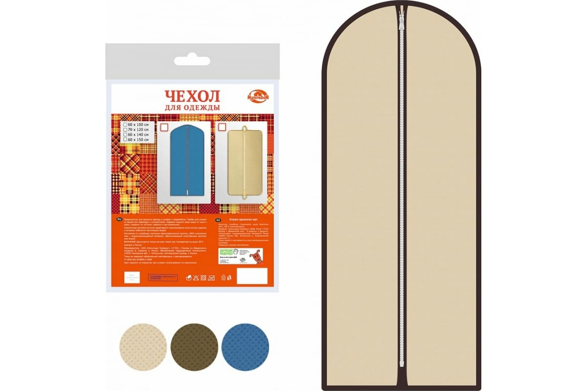 Воздухопроницаемый материал чехла защищает меховую и верхнюю одежду от пыли и моли, синий цвет препятствует проникновению ультрафиолетовых лучей и пожелтению изделия.