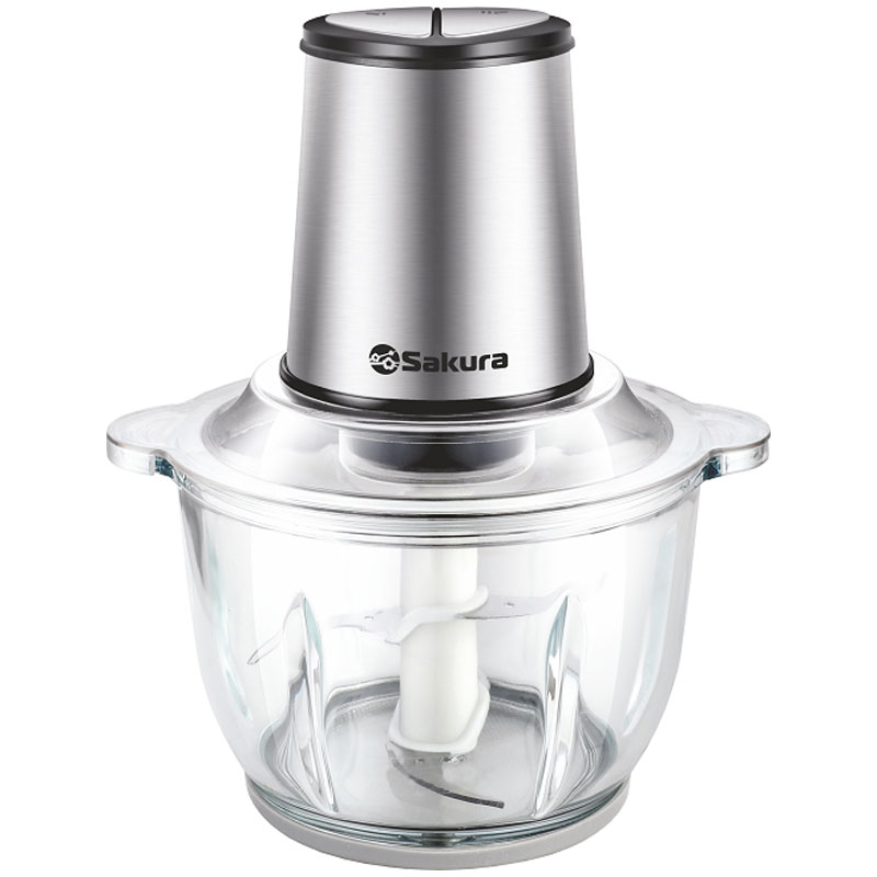 Мощность 600 Вт, стеклянная чаша объемом 2 литра , 2 двойных ножа из нержавеющей стали (4 лезвия), силиконовая подставка чаши, включение нажатием, цвет:черный/серебро.
