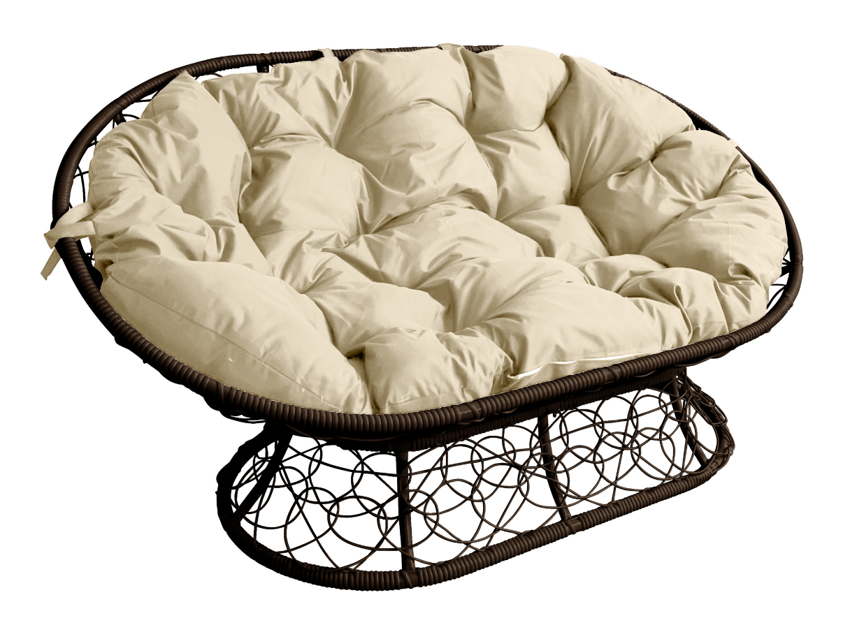 Садовый диван Мамасан-это прекрасное решение для организации зоны отдыха или приема пищи как в саду или на даче, так и зоны отдыха на террасе, холле. Надежный сварной стальной каркас делает изделие очень долговечным. Подушка выполнена из непромокаемой ткани Оксфорд 600 и входит в комплект. Основание и сиденье оплетены полиротангом, который не боится непогоды и устойчив к перепадам температур.