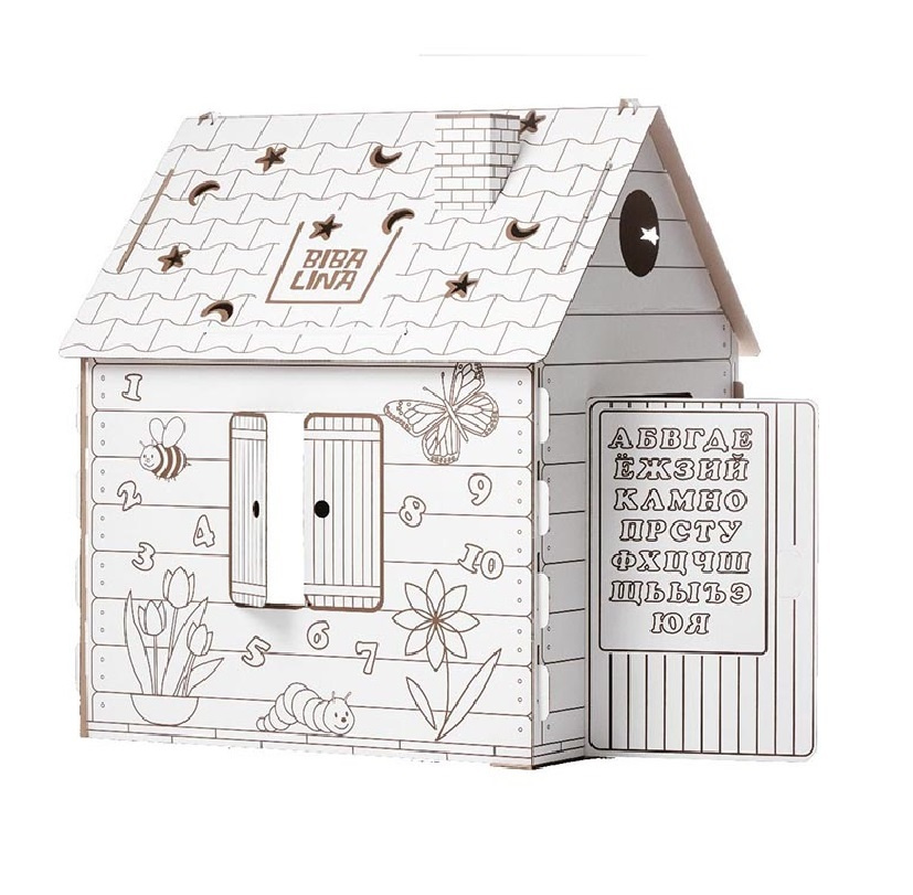 -на стенах домика нарисованы цифры и алфавит, чтобы малыш не просто играл, но и обучался;