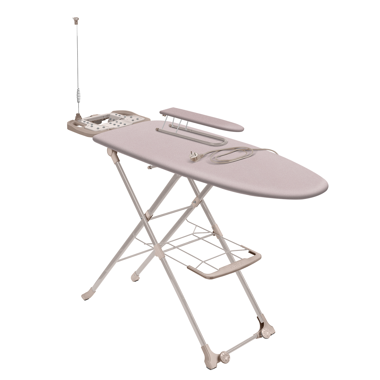 Гладильная доска "Haushalt Avrora" с подставкой под парогенератор имеет прочную металлическую основу, обеспечивает устойчивость и долговечность, а специальная подставка создает удобное место для размещения парогенератора.