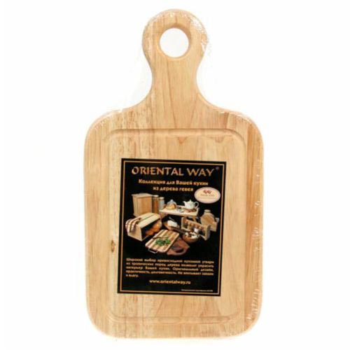 Доска разделочная прямоугольной формы с ручкой изготовлена из высококачественной древесины.