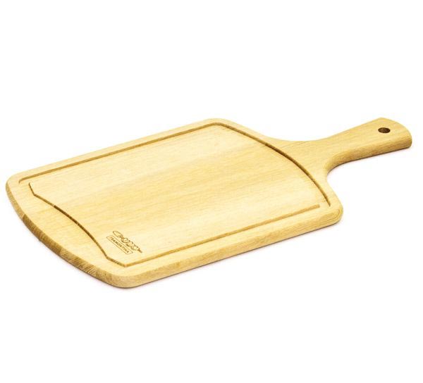<comment>Взял эту доску, потому что старая совсем износилась. Порадовала обработка дерева, гладкая такая. Желобки для сока – полезная штука, когда мясо разделываешь, сок не растекается по всему столу. Единственное, конечно, что в посудомойке не помоешь, но это не критично. Первый день использования прошел отлично, доска как доска, свои функции выполняет.</comment>