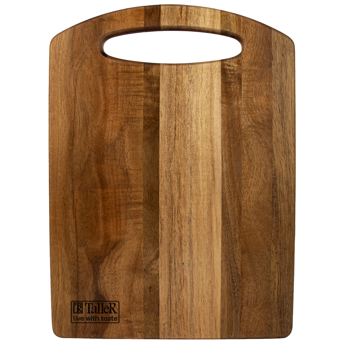 Доска разделочная TalleR TR-52224 выполнена из благородной древесины акации, одной из самых твердых пород дерева. Легко использовать и ухаживать. Не тупит ножи, не впитывает запахи. Обращаем внимание, что рисунок каждой доски индивидуален (может отличаться от фотографии в карточке товара), так как изделие выполнено из натурального материала. Древесина акации может быть как темных, так и светлых оттенков, и это никак не сказывается на эксплуатационных характеристиках разделочной доски.