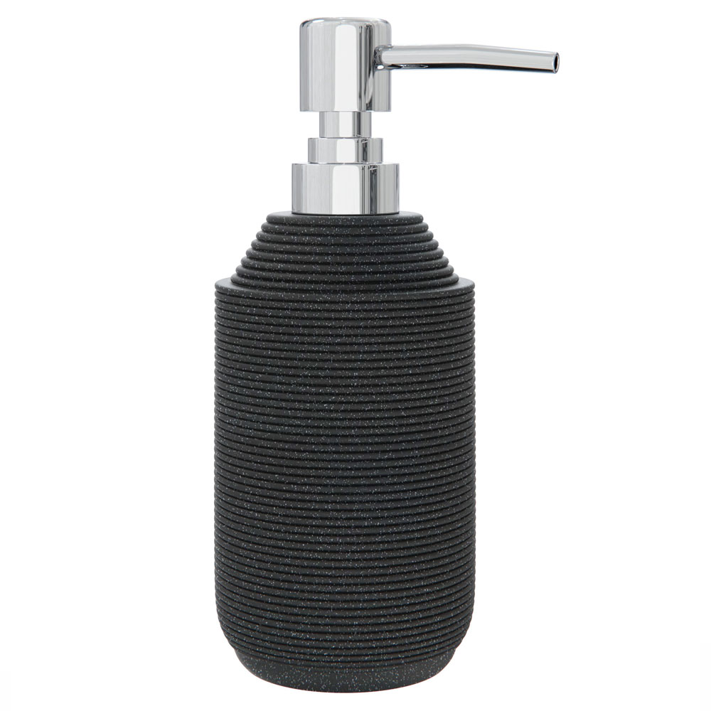 Дозатор для жидкого мыла настольный Twister black от бренда Fora выполнен из прочного полирезина и качественного пластика. Благодаря стильному дизайну изделие черного цвета отлично вписывается в интерьер современной ванной комнаты.
