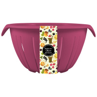 Дуршлаг с двумя ручками среднего объема (2,5 л) позволит вам использовать его как для мелких продуктов (рис, макароны и т.п.), так и для мытья ягод и фруктов.