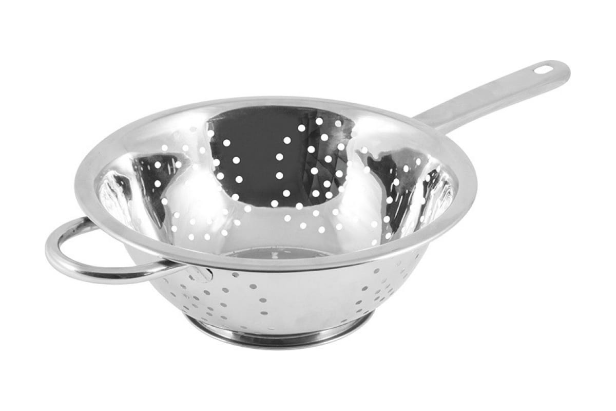 Дуршлаг Mallony Napoletano из нержавеющей стали с длинной ручкой, диаметр 22 см предназначен для промывки круп, фруктов или овощей.